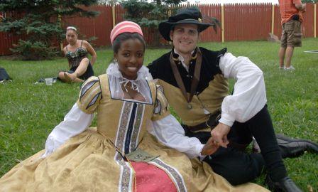 The faire felt a little different this year, but we had a good time. I can’t wait to see how the performances evolve through the season. I also can’t wait to get into the stores next weekend. I did a little browsing in the tea shop, but nothing major–I’m too afraid of knocking over merchandise with my gown. We’ll probably go lower class next weekend, so the shopping is on. My main goals are boots and bellydance accessories.