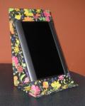 The third project was also quickie–a cover for my new Nook Color. First off, I love it. Second, I’ve already read way more in the last two weeks than I have in the last two months. To be fair, I have to take “mommy breaks” during the day, so reading is ideal over staring at a blank wall. For the cover, I modified the ChicaAndJo Kindle cover instructions to fit my Nook, adding a strap at the top, and a glue strip on the flap to stop it from hitting the floor. I also cut it down to the reader’s size, ignoring the C&J measurement system, which makes these covers wa[aaaaaaaaaa]y too big for non-Kindle devices. The only snag was that I ran out of the sturdy cardboard that I used on the last e-reader cover, so I used the next thickness down that I had on hand. Unfortunately, the Nook is heavier than every other reader, so I’m going to have to replace the cardboard one day soon to avoid any heart-breaking accidents.