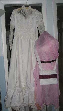 Related to the wedding, another bridesmaid donated her wedding gown to my stash. In return, I made a “something old” gift for the bride from all of us and a keepsake pillow for the donating bridesmaid.
