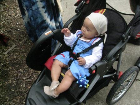 We expected the heat to be an issue, but it turned out to be a beautifully overcast day. It was windy and a bit muggy, but it was perfect for testing the wee-one out and about. Our biggest concern was the number of people who called her a “handsome young sir”. We remedied that by the end of the day, when I bought her a flowered headband.