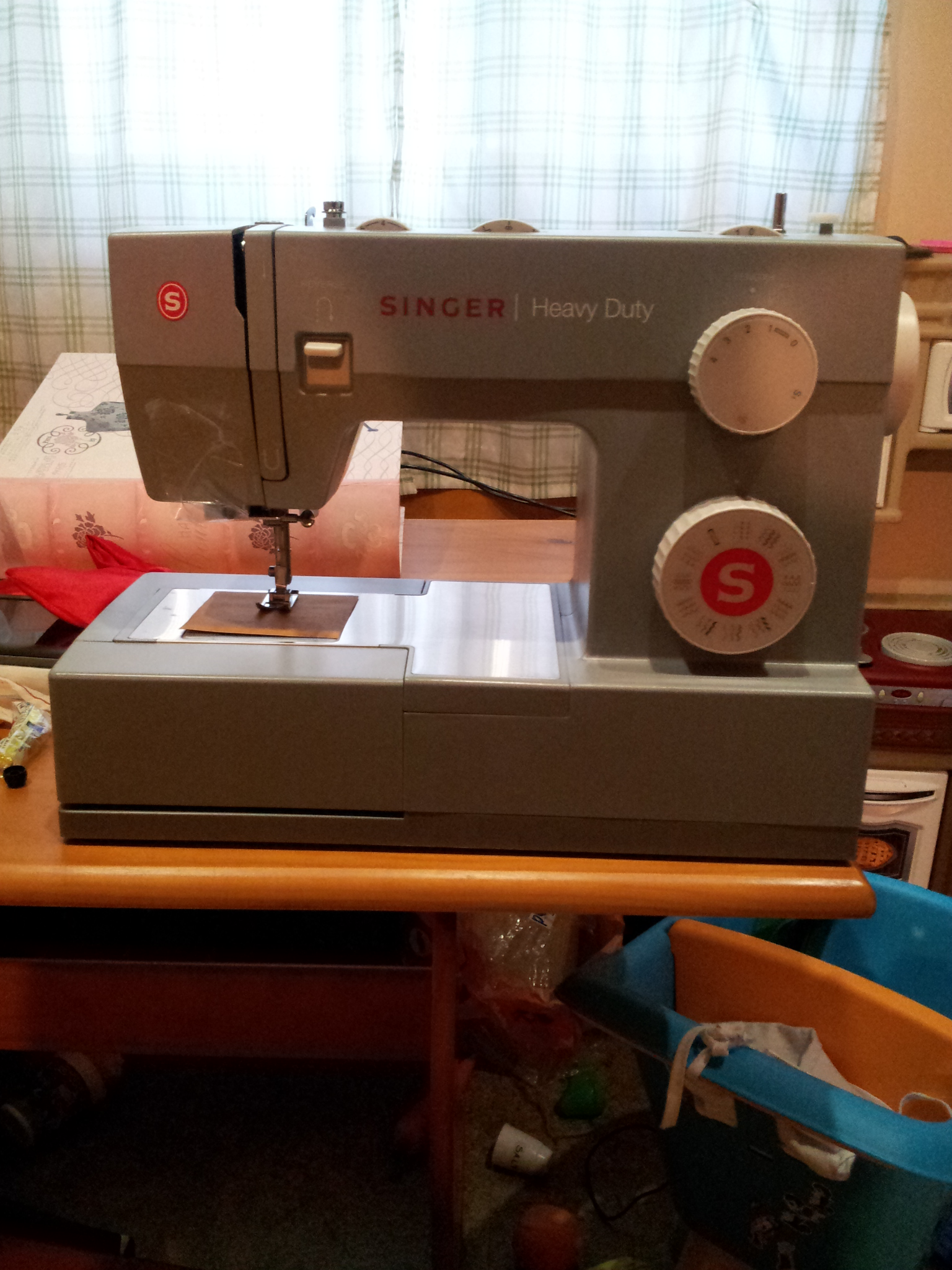 First, I got a new sewing machine–the Singer Heavy Duty. I needed a new primary, since my older Singer has become unreliable, and I don’t want to have any unfortunate accidents with my pretty little Brother. The new machine, Jayne, has been lovely. I was concerned that she’d be too sturdy for my mid-size sewing table, but I haven’t had any issues.