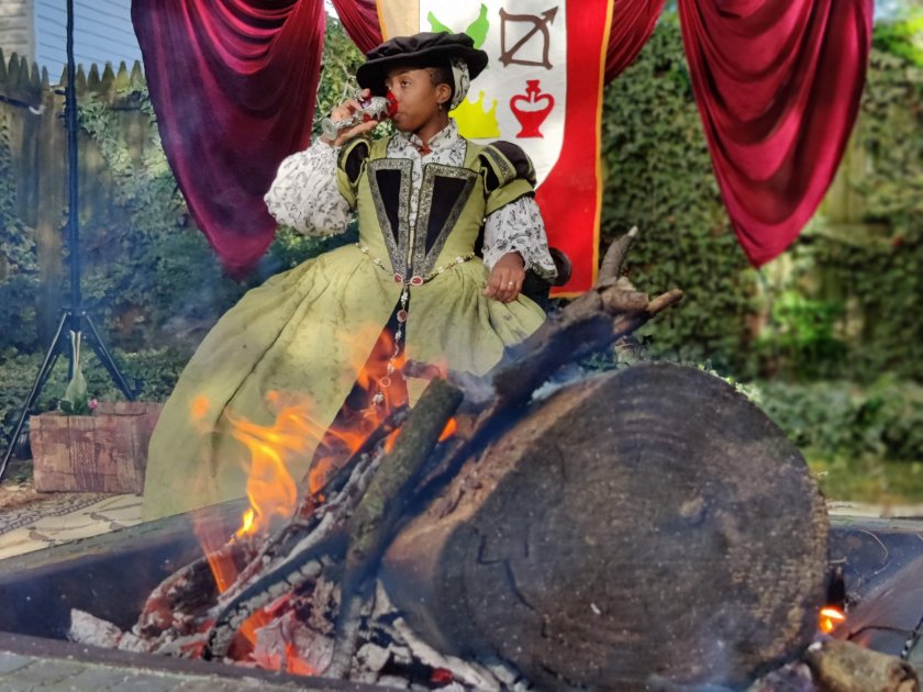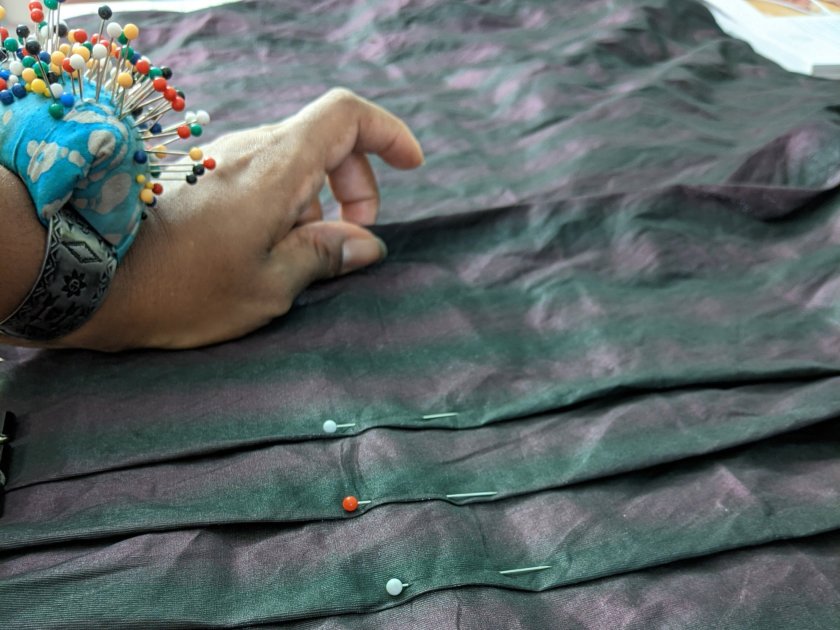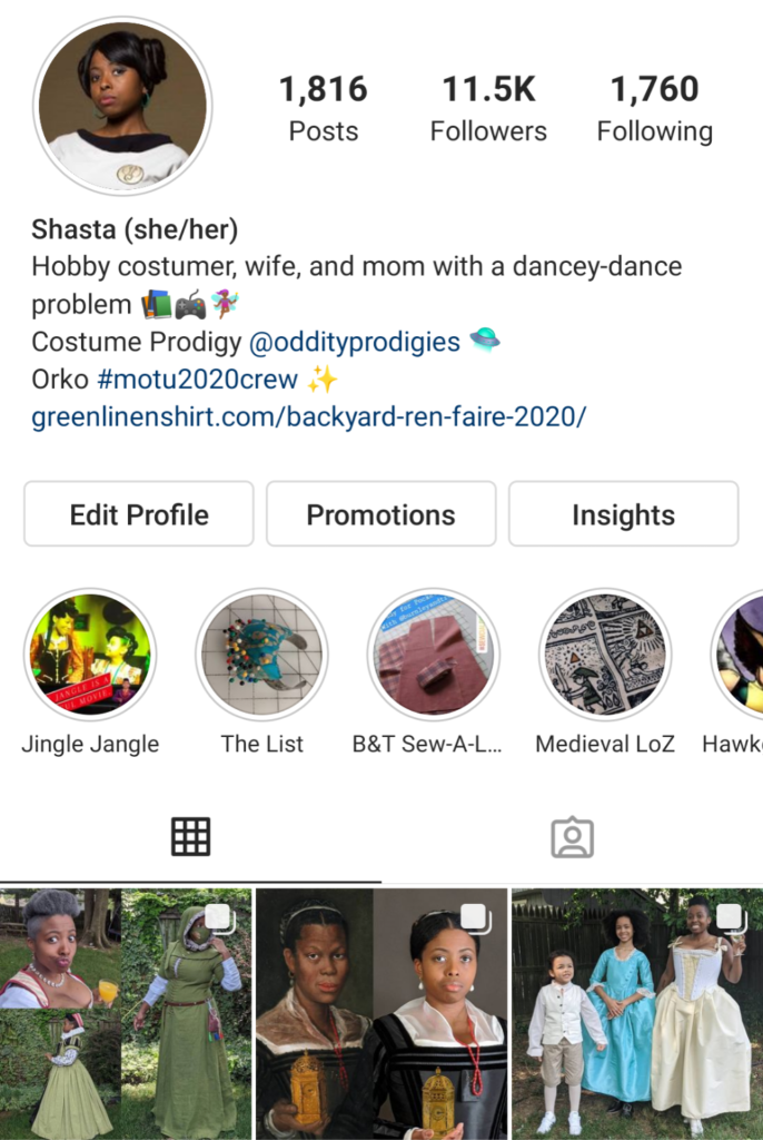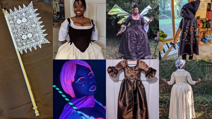 So, what has taken my attention from writing at all five of you in the last few months? I assembled my DSA Threads Lace Fan, which means that I’ll need a new gown soon. The Princeling finally got his Hylian Cloak, which was hand painted because I needed the break. I attended virtual Tudor Con, and yes, I did dress up even though I didn’t show my face on Zoom for most of the weekend. My Halloween stashbuster Fairy Godmother turned out great, but most importantly, I thoroughly enjoyed making the Redthreaded Georgian stays. I peeked my head out of hiding and recorded a blacklight belly dance performance. I completed two pieces during the Burnley & Trowbridge English gown workshop–a poly taffeta mini and a stripey linen me-size. I am happy to report that the scary waist cut is now demystified and I’m feeling a bit unstoppable in that very specific situation. If you can manage to get a slot in one of their amazing workshops, I strongly recommend learning with the B&T team.