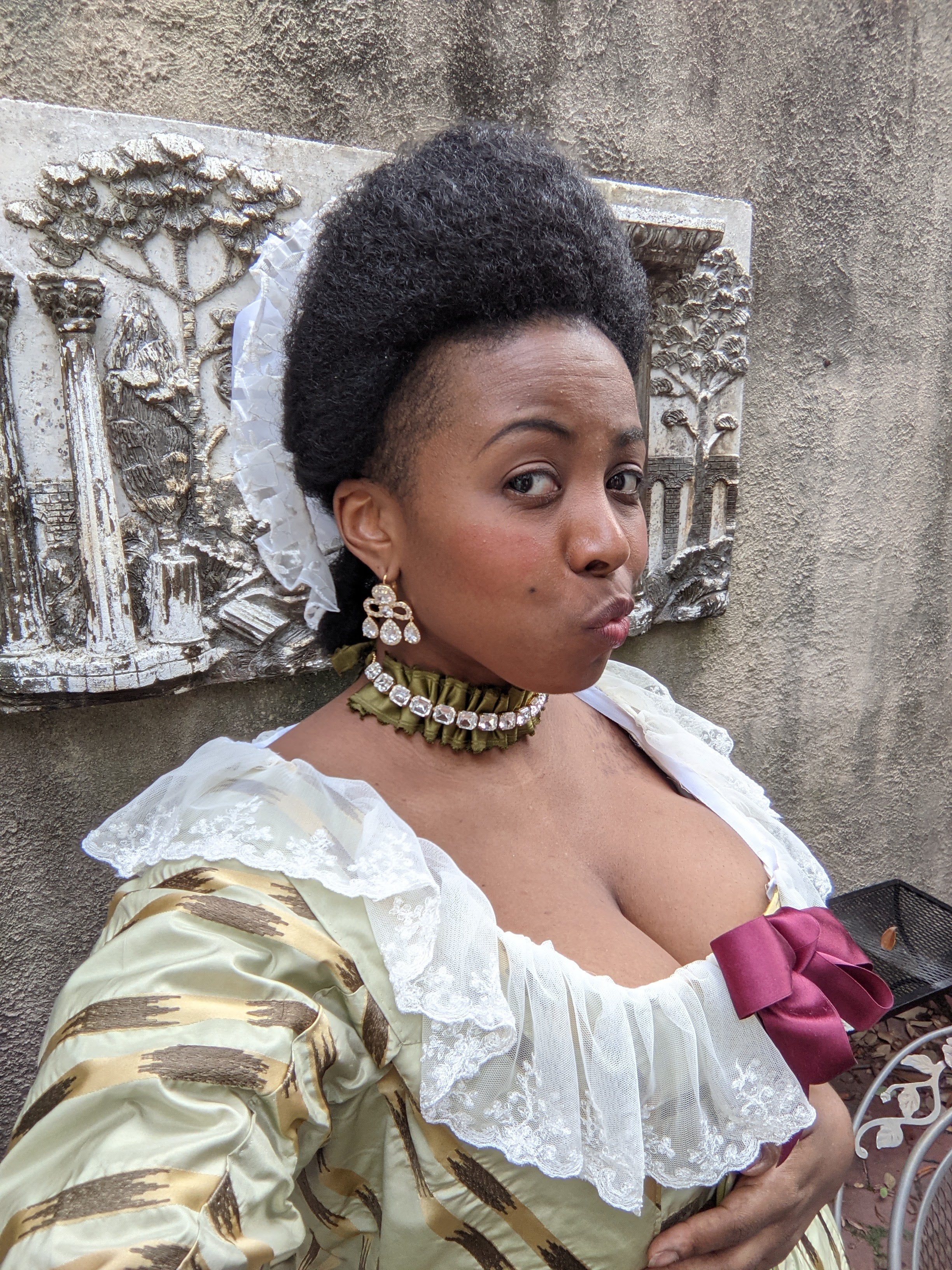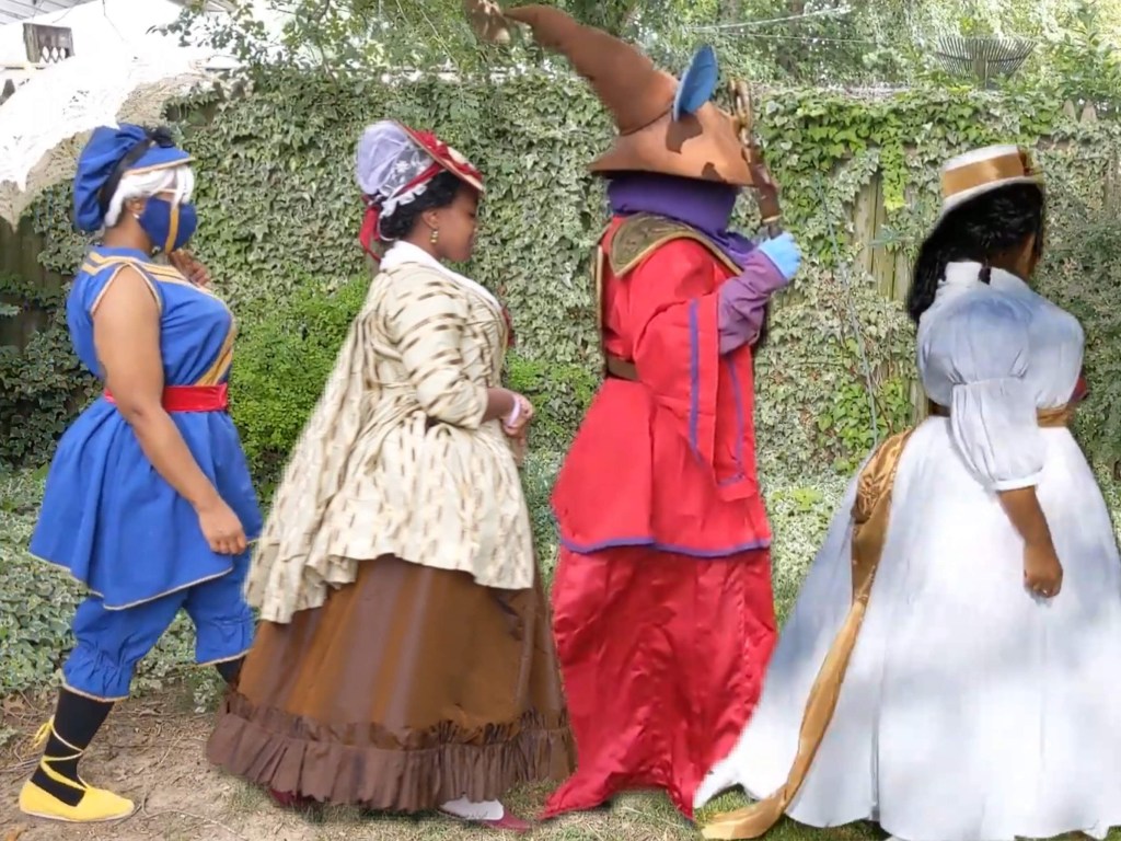 My birthday chemise gown was started with the intention of blending some costuming trends in the summer make-train. All I wanted to do was send Lady Dimitrescu back in time, the way my mash-up brain saw her. However, the “CW Incident” invaded my studio and pushed me down a different, but arguably better path. With the privilege of time and internet access, anyone can be an independent researcher. Paywalls still exist, but there are untold avenues with a library card, the correct search terms, and a translator app. If I can find and review for context information on the cotton industry in the 18th century and its ecological, political, and socio-economic impact, Y’all can take a minute to review the CW calendar months before a monumental frak-up. I’m not going to address the plantation dress-up aspect of this situation because I keep rolling back to the Disney-Historybounding links and I just can’t untangle them. I appreciate the outrage by people just now learning historical facts, and I fully encourage “see something, say something”. That said, please make sure that you’re fighting for the right piece of the outrage puzzle, and you’re not just protecting yourself from actual allyship. Next, I had a great time at BlerDCon. Full stop. I shopped, hung out, ate well, communicated with humans in a face-to-face manner for the first time in 18 months, and had a really comfy couple of nights rest. We’ve been attending the con since Year One and have no intentions to stop that streak. This year felt different (not bad, just not the same) in both the scope and the crowd. [Thanks, 2020.] But by the time I checked social media on Monday, the community follow-up to some very specific issues was entirely out of control and generally disgusting. Again, I had a great time–elevator waits included, so seeing people bash and try to cancel the only convention where i’m not called “Black [Character]”…it’s hurtful. Express your dissent in a survey. Publish a YouTube video and provide your receipts along with your feelings. Line up your suggestions for improvement and email that to every single departmental email address on the website. Don’t start a train on a FB post spreading rumors and talking sugar about a con you didn’t attend and have no plans to support. Do you keyboard rant at any other con owners to step down? Are you that person who screams at prop check volunteers because the zip ties will show in your photos? Did you say,”Screw the rules” and walk around without a mask claiming that the public spaces in the hotel aren’t all con areas? If so, you are the problem. This five year old convention is not perfect. Neither is Baltimore Comic Con. Neither is Dragon Con. Neither is [insert your local library] Con. Neither are any of the Wizard World / ReedPop cons, so why is it so difficult to help the convention work through its growing pains without calling for an earth-salting end? If my comments section ever got half as bad as The Con Chair’s first response video, I would have deleted it too. I go to BlerDCon to relax in costume with cool people while being introduced to and supporting black nerd talent. There are missteps and, yes, levels of disregard that can not and should not be ignored in the next planning meeting. But nothing will improve through all of the literal shouting. Sign-up to volunteer in 2022 and BE THE CHANGE.
