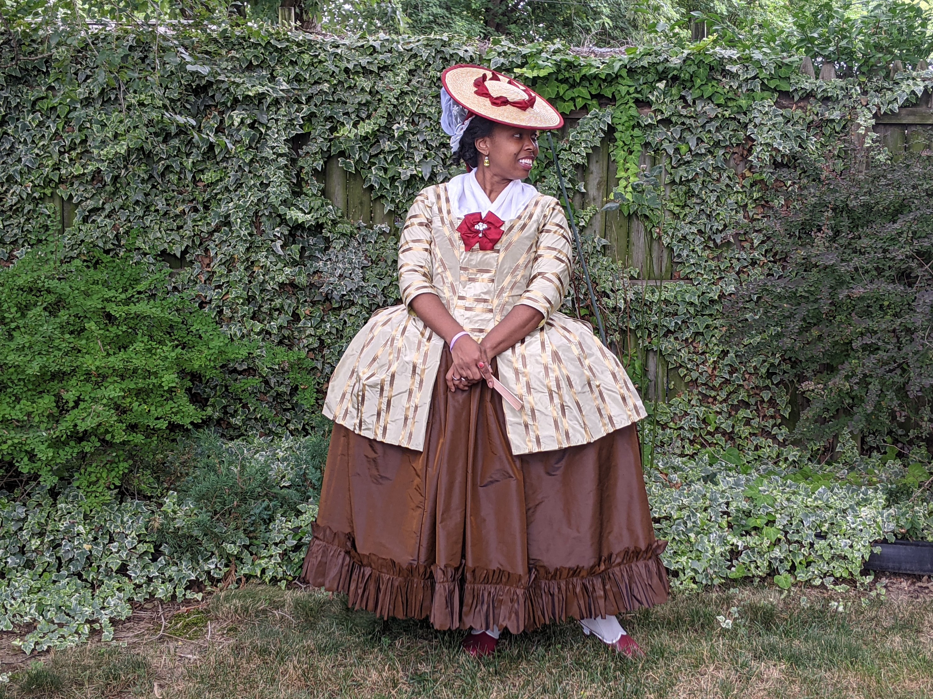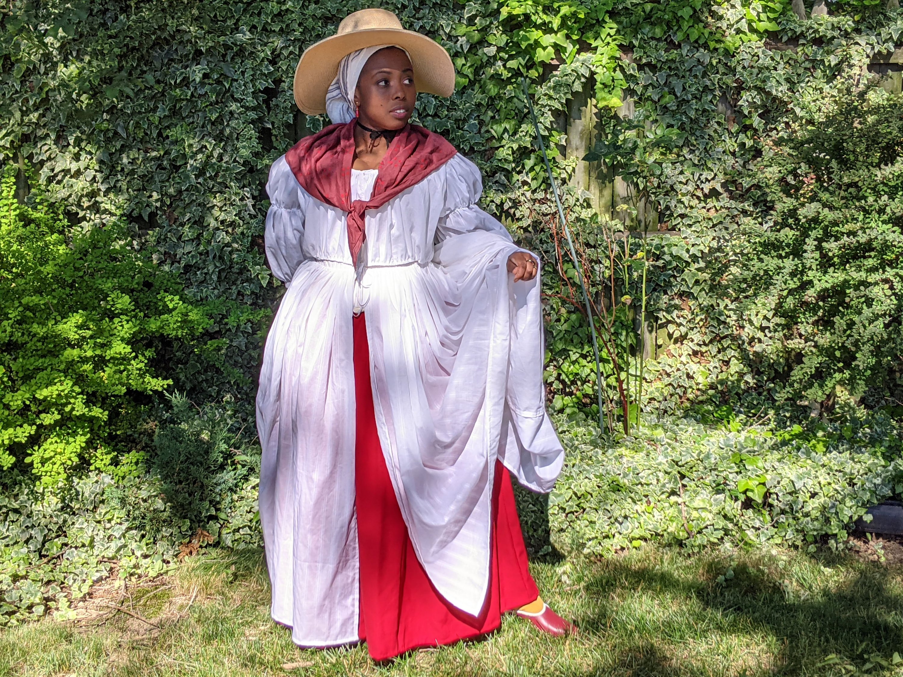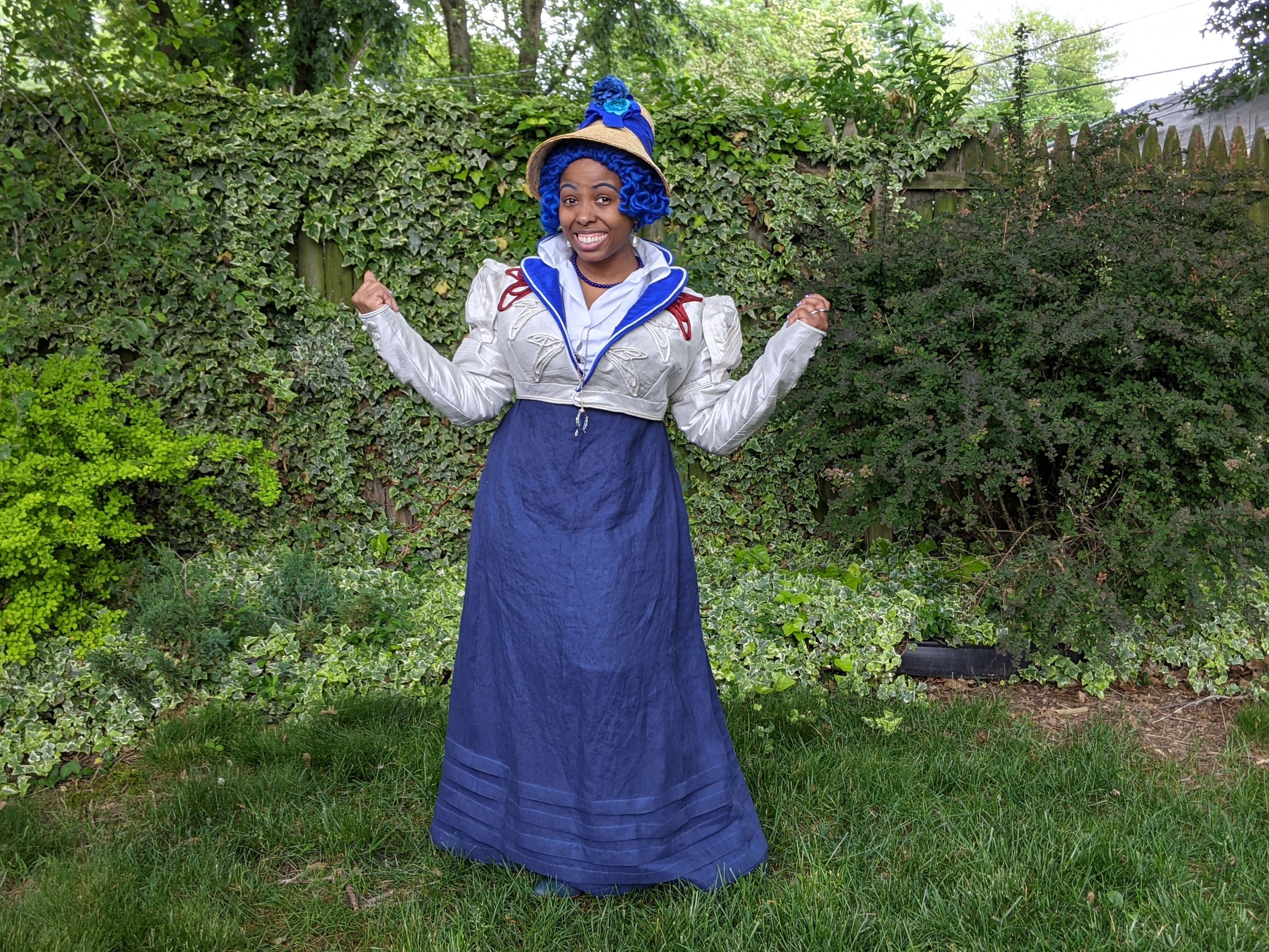 Some exciting developments this quarter included purchases for some WIPs, shoes, stays, kits, and books. I did a couple of backyard photo shoots–mostly for one-off IG posts or YouTube bits, so don’t judge me. I finished the first part of Regency Sailor Mercury, a pillowcase Tudor petticoat, that chemise gown for reaching Level 41, a Victorian bathing corset, Squidsmith for Blerdcon, and my first short sacque or pet en l’air with a new petticoat. I also randomly ordered some USB lights to supplement my ring light, and used it for a quick IG live with SheProp. We chatted about last year’s Georgian Princess Allura and geeked out about historically inspired cosplay.