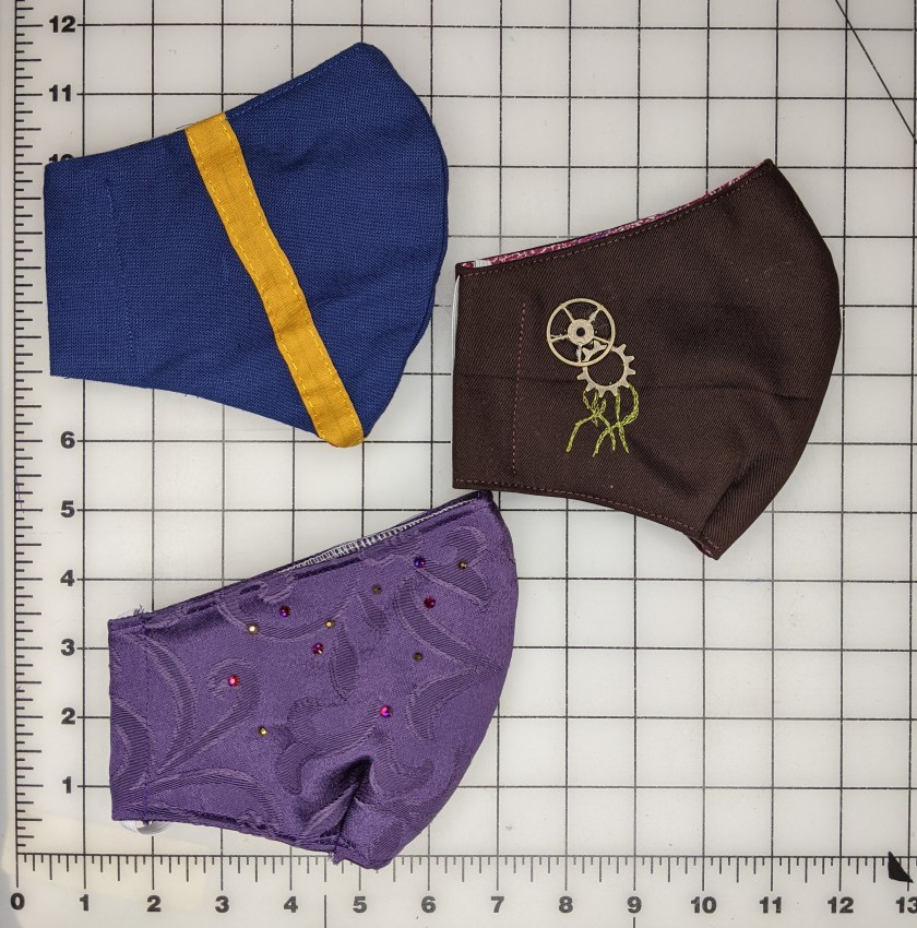 The end of the calendar year has shone a light on the comical ratio of costuming hobby components to livable house space, with the move out of my dedicated studio. The eldest was ready for their own room, so I am now sprawled amidst the basement, walk-in closet, front room, and family room. Each area has a clearly visible containment line, but I’m not really into my sew-flow quite yet. We’ve only found one rogue floor pin thus far, so I’ve been hypervigilant in counting while I work. October was a harried nightmare of projects, and I did some more events–both in-person and virtual. November was deathly silent by comparison. I am currently bust deep in my Medieval Legend of Zelda project, with a new, third 3D printer to put to work on accessories and a pile of embroidery to do with my new Ruby.