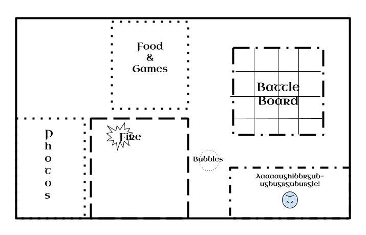 At some point, I realized that the list was too long, so I took a look through my studio to find materials that I could use to build the experience. Once narrowed down to a reasonable size, I grouped the activities loosely by theme. I mapped out our backyard, keeping in mind which spaces would be the focal points and which spaces would be easiest for setup and breakdown. The design primarily hinged on the square dry patch left by our pool and also the porch, which has the fire pit.