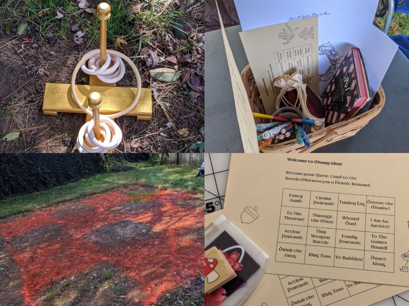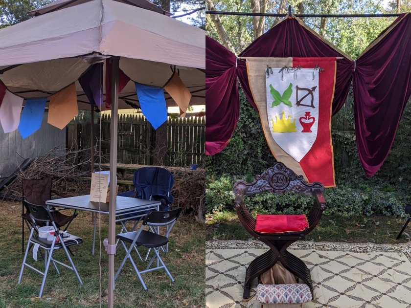 Hench Hubby and I have been attending local-ish renaissance faires for 15 years. It’s how my lifelong love of historical costuming was made into something real. The kids have been attending ren faires since infancy and have affectionately labeled the fests “The One With the Playground” (NJRF), “The One With the Pickles” (PARF), and “The One With the Trees” (MDRF). So when an actual plague broke out and put a halt to our annual event season, our family was crushed. My wonderful spouse offered to make turkey legs while we sat out at the fire pit with some good music, reminiscing about the before times. Never one to miss an opportunity to get dressed up, I also wanted to pull out our rennie gear. Under the guise of “thinking of the children”, the Merry Glen Backyard Renaissance Faire was born.