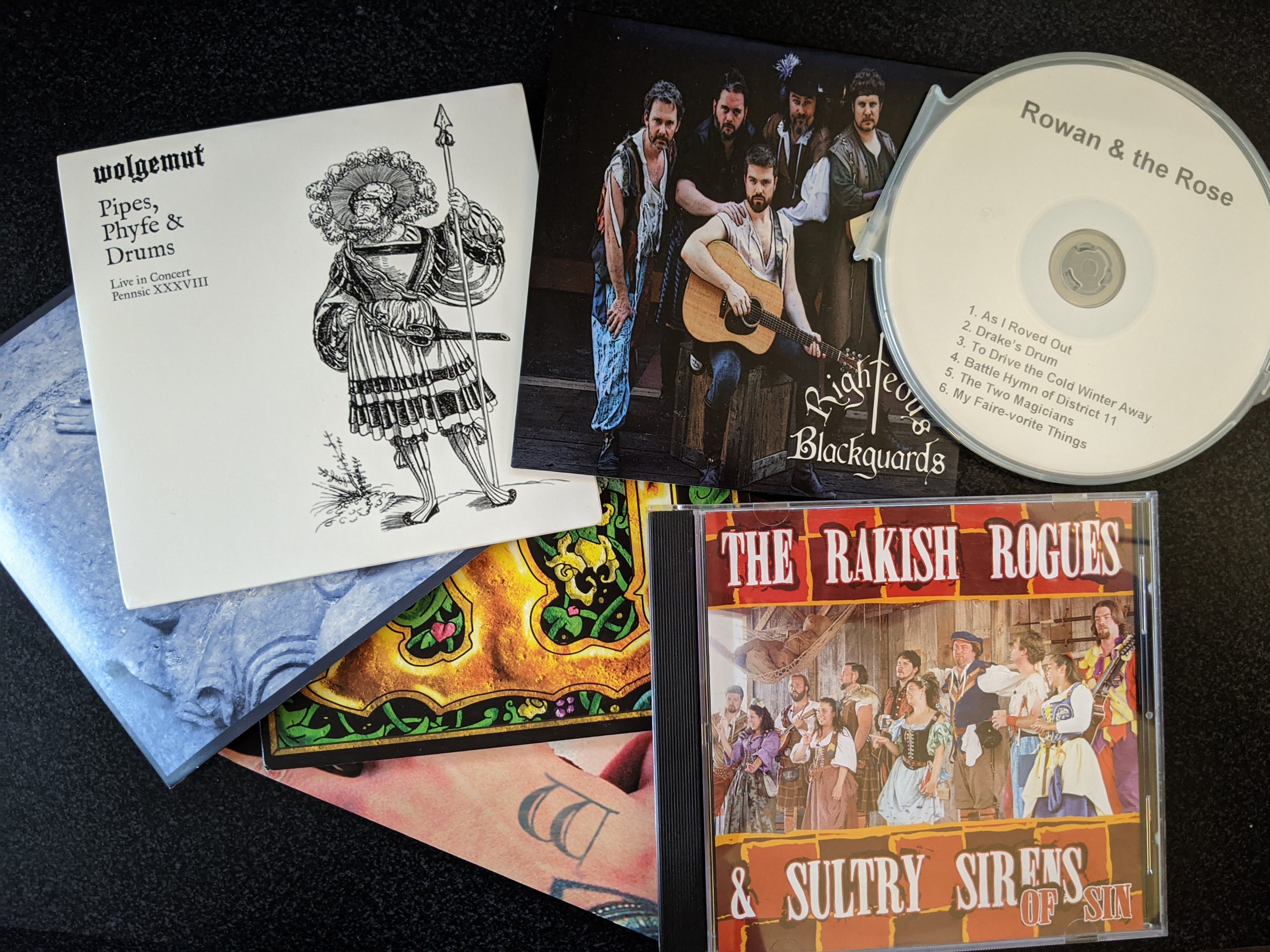 My habit of buying CDs from our favorite acts came in handy and provided hours of great, themed, the-neighbors-won’t-yell music. We had The Rakish Rogues & The Sultry Sirens of Sin from 2011-ish era PA Ren Faire, Rowan & the Rose, The Righteous Blackguards, and Wolgemut…so much lovely Wolgemut. I ripped the selections to my laptop and pressed play.