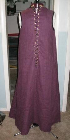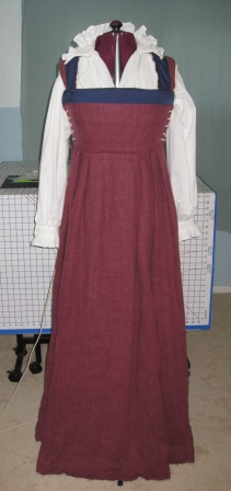 Tudor kirtle w/ alterations – mulberry heavy linen, navy (trim) cotton/poly blend