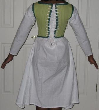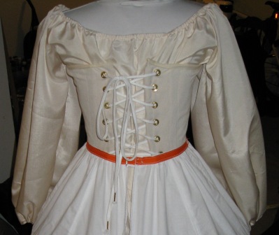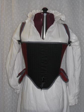 Corset 2 is shown with the far-less-than-perfect low-necked smock, which will be replaced as soon as I have time. I will have to employ two string lacing for this, as you can see from the back view.