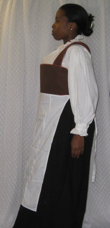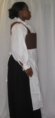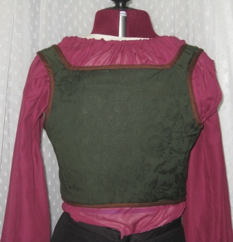 The bodice is too short, and I don’t like the curve of the point. I usually alter the point to a V, but I didn’t this time, just to see how it would look. I’ll wear an apron to cover the length.