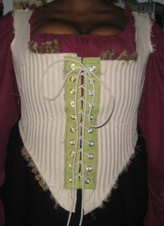 The bodice needs reconstructive surgery to fix the crease that formed during the first few hours of faire.