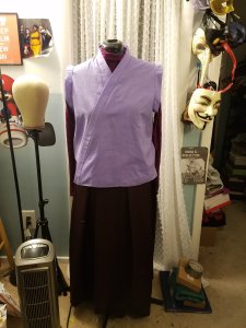 Fabric from stash, draped and pleated, sewn to waistband, shorter hem on front panel